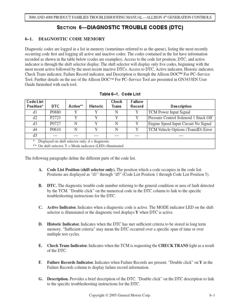 Allison Codigos Transmission Mechanics Vehicle Parts