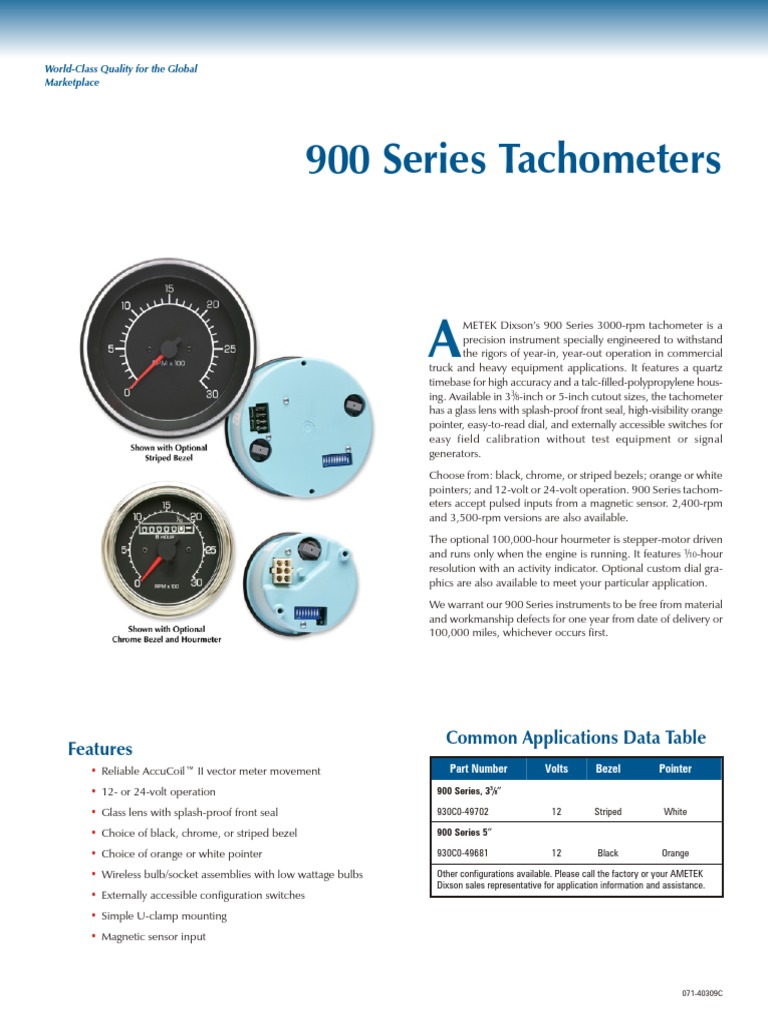 900 Series Tachometer Equipment Electrical Engineering