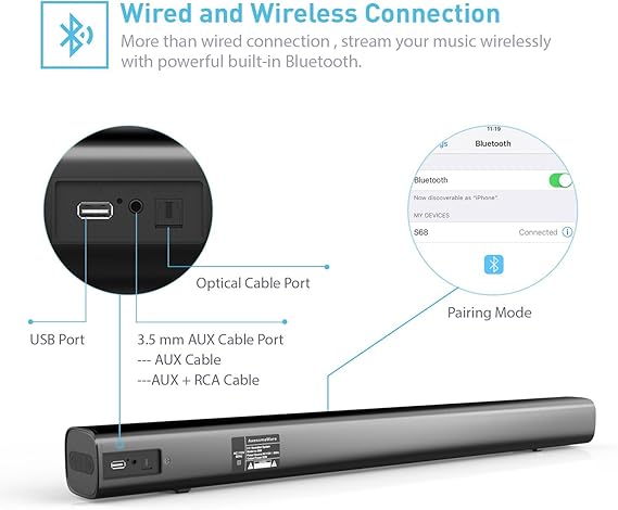 Amazon Com Sound Bar Wired And Wireless Surround Soundbar Bluetooth Audio Speakers For Tv 29 5 Inches 2 0 Channel Home Theatre Sound System With 50 Watts Speakers Aux Optical Usb Bt Input Modes Home Audio Theater
