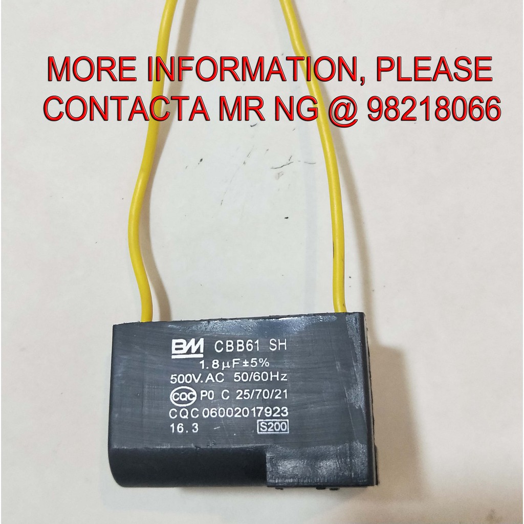 Fan Capacitor 1 8uf 2 Wires Cbb61 Bm Shopee Singapore