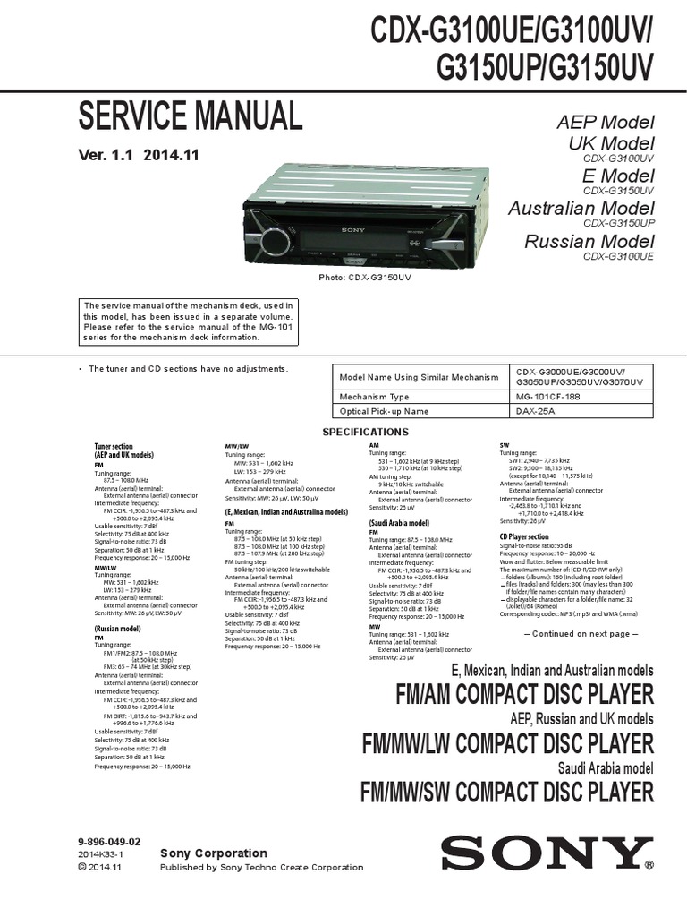 Sony Cdx L350 Service Manual