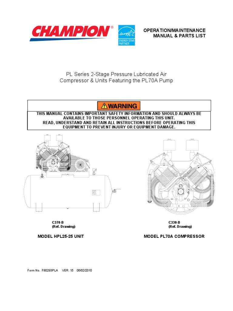 Champion Air Compressor Manuals For Compressor Pumps