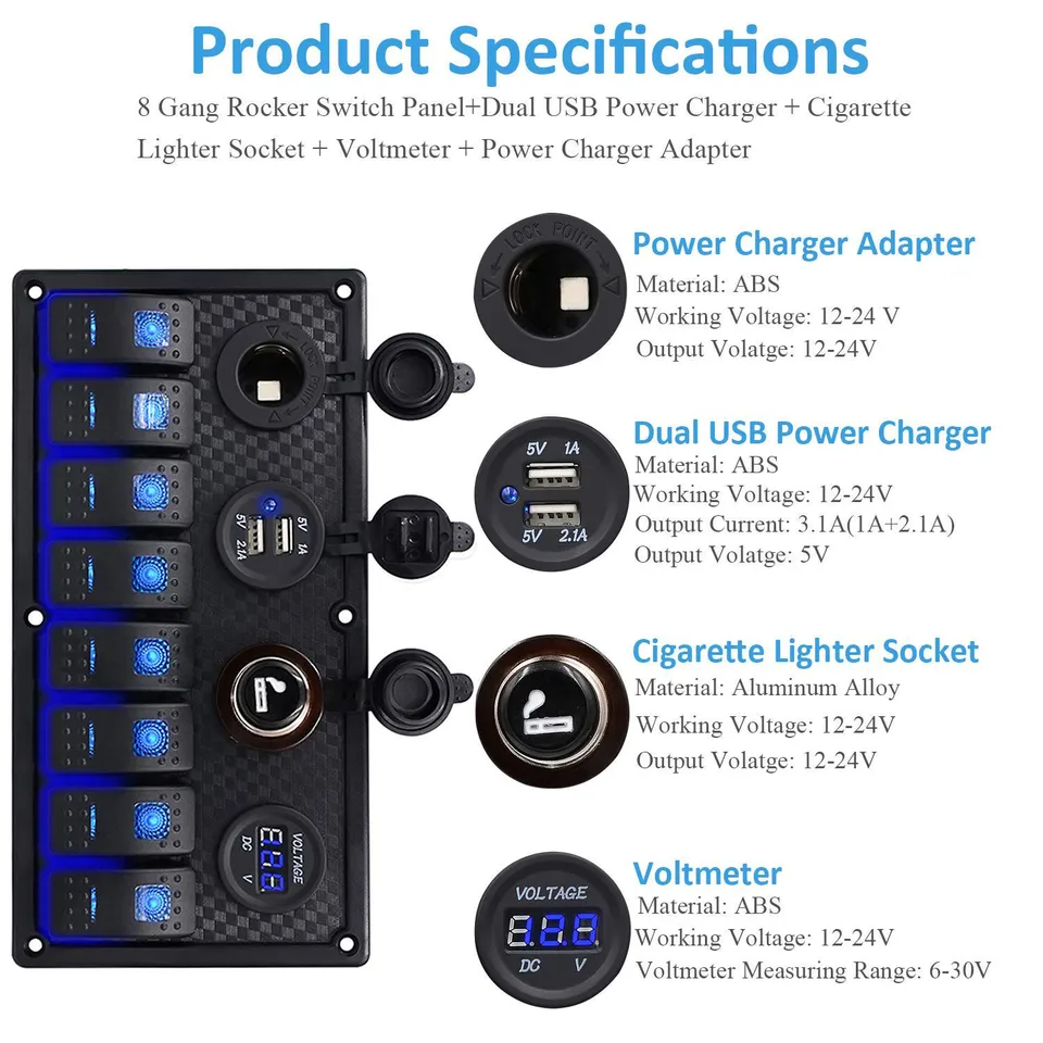 Boat Marine Rocker Switch Panel 8 Gang Waterproof On Off Toggle