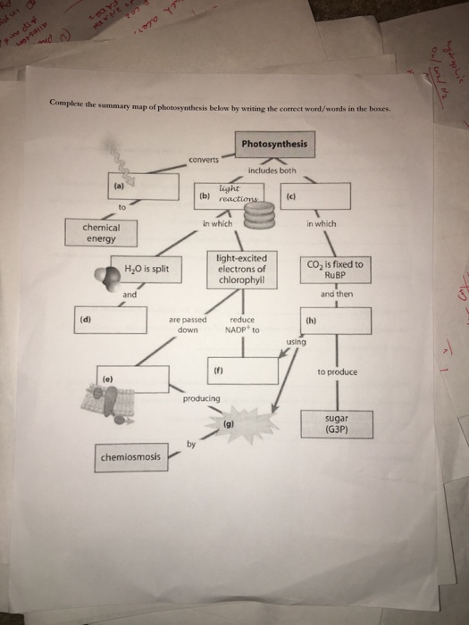 Solved Complete The Summary Map Of Photosynthesis Below B