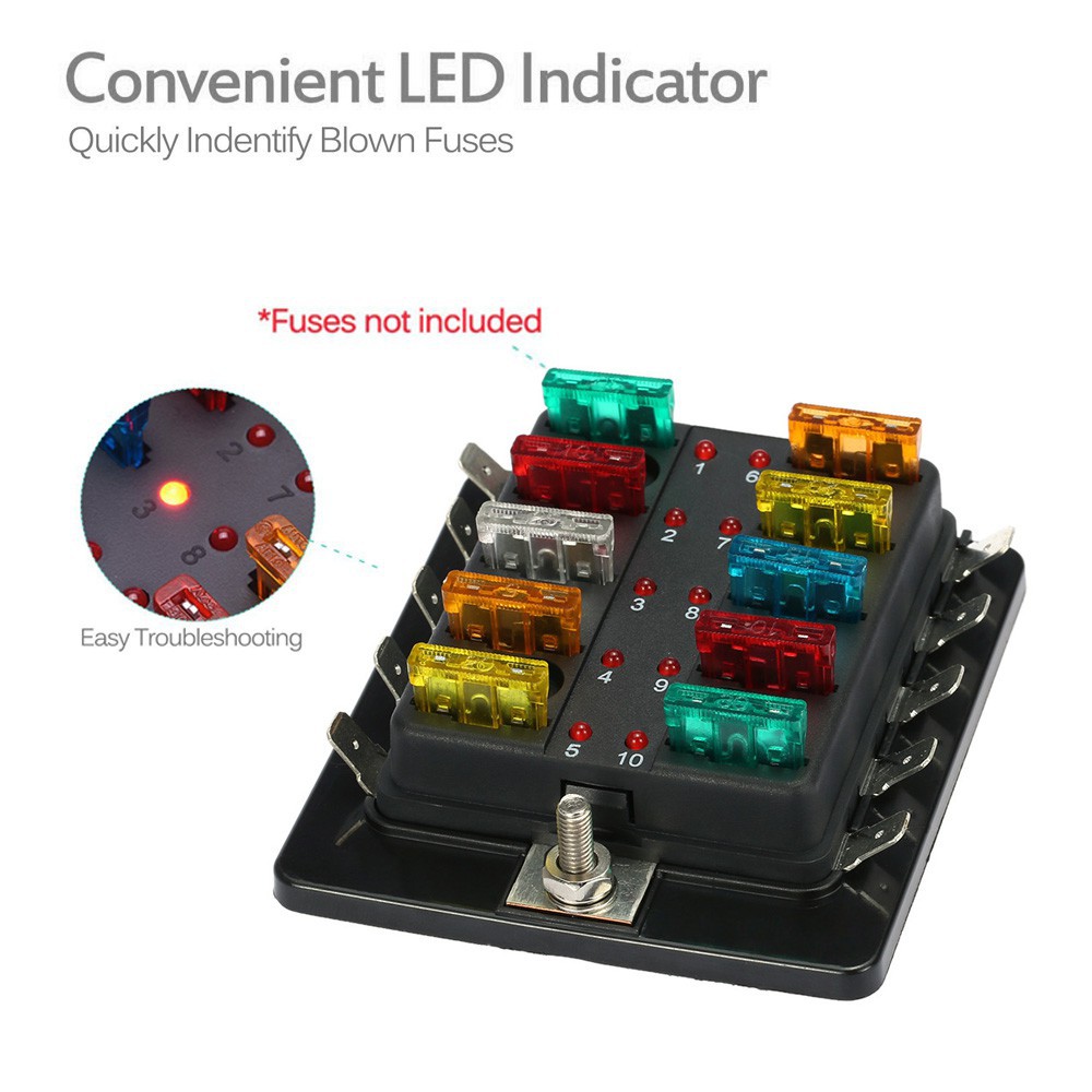 2020 12 Way 12v 24v Blade Fuse Box Holder With Led Warning Light