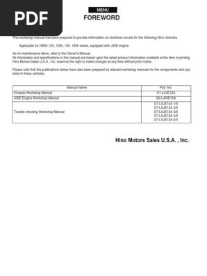 Hino 2015 Trucks 155 155h 195 195h With J05e Engine Set Of Manuals
