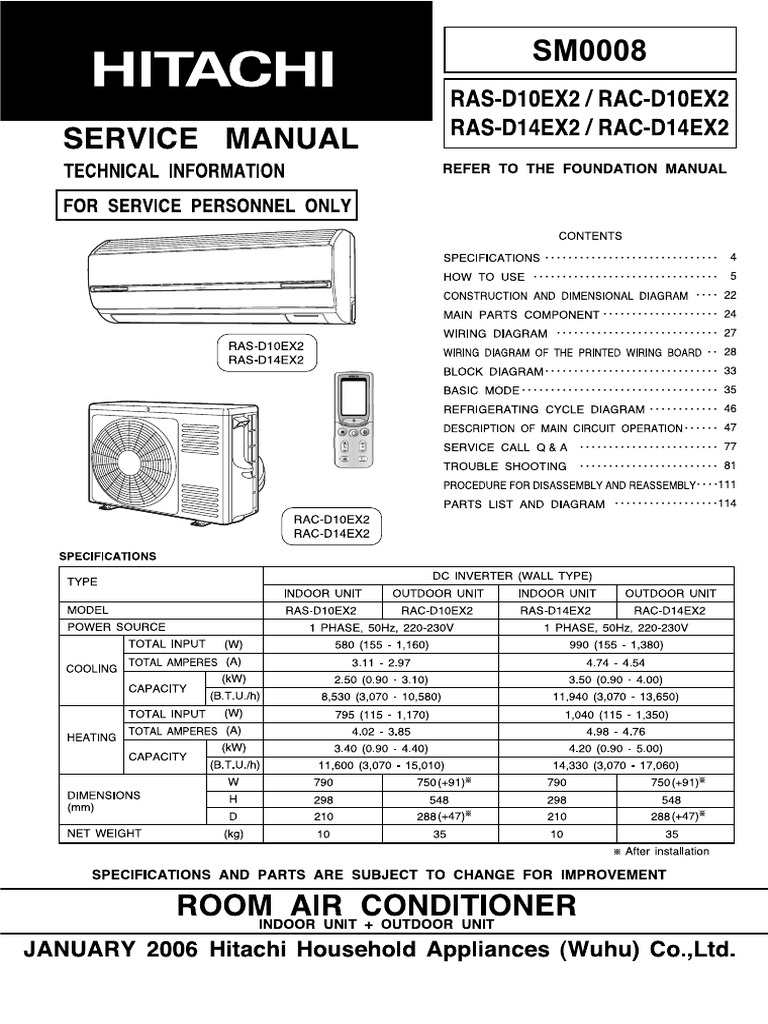 Hitachi Rac D10ex2 Rac D14ex2 Ras D10ex2 Ras D14ex2 Hvac Air