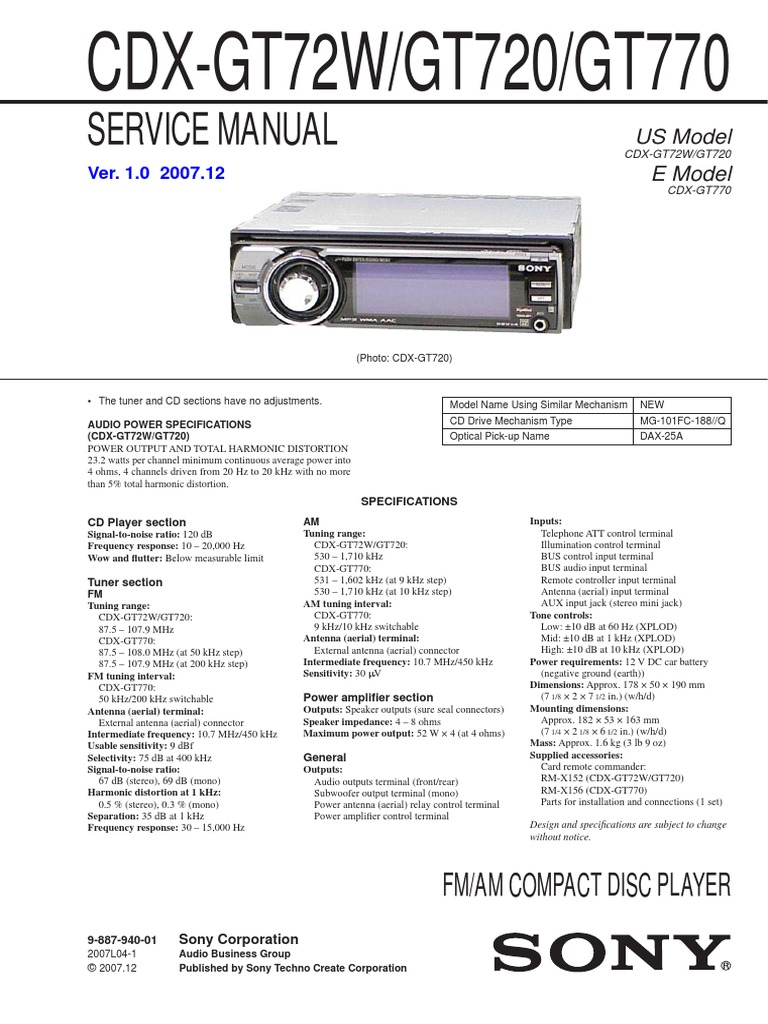 5915a Sony Cdxgt 770 Service Manual Antenna Radio Hertz