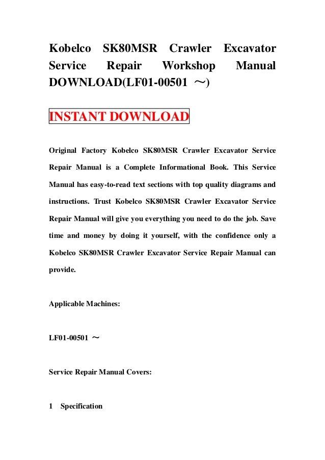 Kobelco Sk80 Msr Crawler Excavator Service Repair Workshop Manual Dow