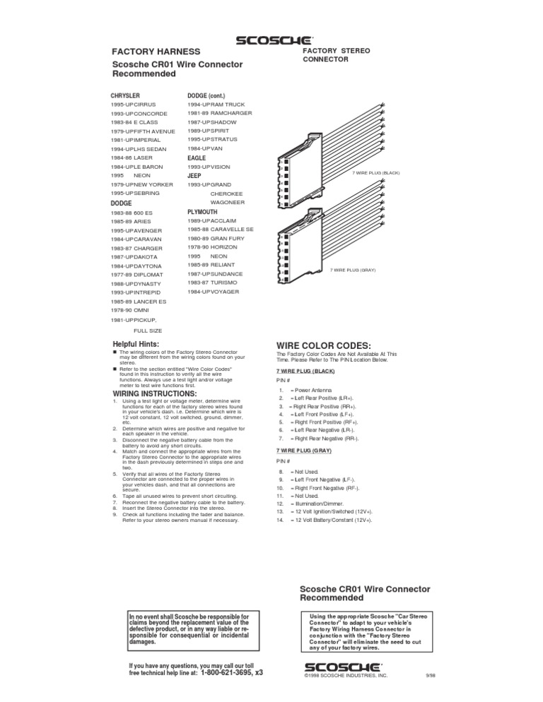 Factory Wiring Harness Dodge Ram Scosche Dodge Chrysler